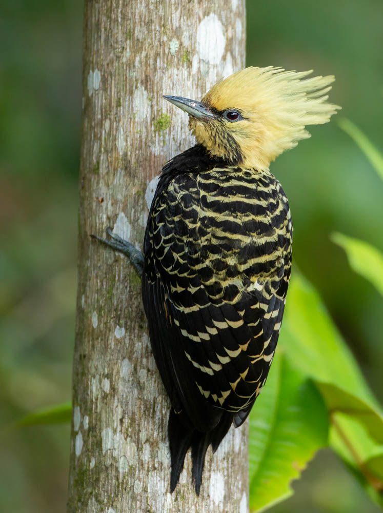 O pica-pau-de-cabeça-amarela se alimenta de larvas, insetos, frutas, bagas e até néctar de algumas flores. Outra curiosidade legal é que o macho tem participação muito ativa no cuidado dos filhotes, chegando a ajudar a fêmea até na incubação dos ovos.