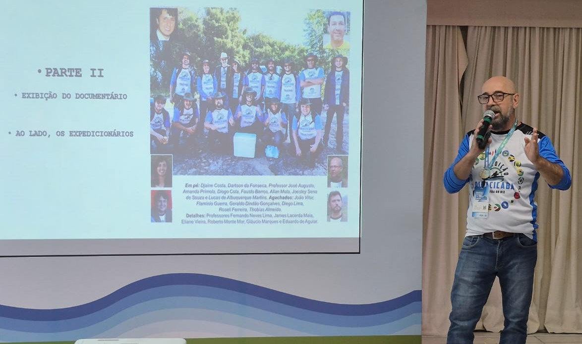 A oficina contou com a participação especial do professor e ambientalista Henrique Lobo, que participou da abertura do ENCOB com a palestra magna “Os Rios da Terra”. Com a experiência de quem já estudou rios e bacias hidrográficas em mais de 60 países, o professor, conhecido mundialmente por seus estudos de rios, relembrou suas próprias expedições, incluindo uma no Rio Piracicaba, e enfatizou a importância de compartilhar o conhecimento com a sociedade. “Não adianta termos o conhecimento e mantê-lo dentro de um laboratório, é preciso compartilhar esse conhecimento e as expedições têm esse papel”, afirmou. Em reconhecimento ao trabalho de Dindão, ao final da oficina, o professor o presenteou com sua última obra, “Bacia do Rio Doce – Notícias e pesquisas”.