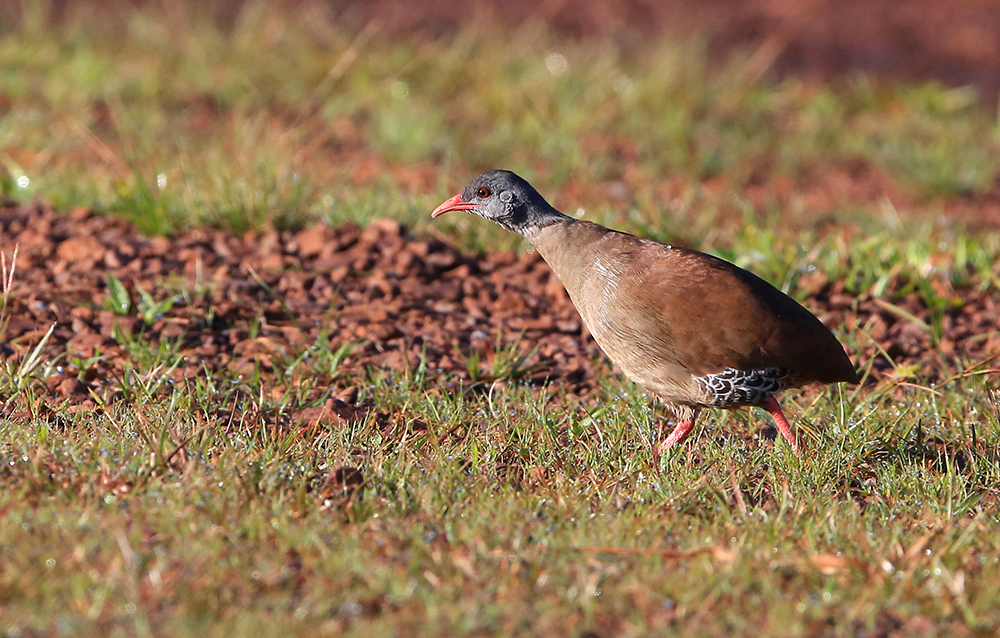 Só para ilustrar o que estou dizendo, as fotos do inhambu-chororó dessa edição, uma foi por um encontro fortuito quando estava trafegando por uma remota estrada de terra, e a outra pelo método de atração convencional mesmo. Já as do inhambu-chintã foram conquistadas graças a um longo trabalho de ceva realizado pelo dono de uma pousada especializada em observação de aves. Fotógrafos e observadores do mundo todo vão lá para poder ver esse e outros “fantasminhas”.
