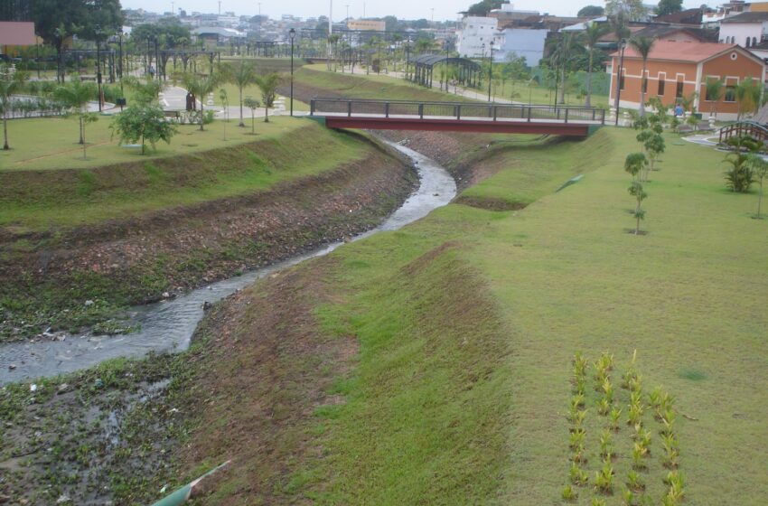 Outro ponto importante é a obrigatoriedade de arborização não apenas nos passeios e vias, mas também em áreas institucionais, praças, rotatórias, áreas verdes e espaços públicos internos aos loteamentos. O texto recomenda ainda o uso de jardins de chuva nesses locais, prática que favorece a retenção e infiltração da água no solo.