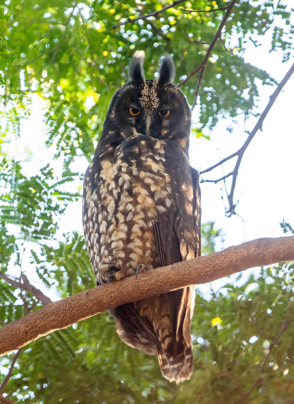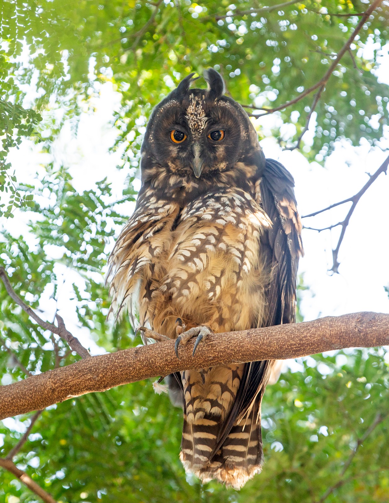 O mocho-diabo (Asio stygius) é uma coruja de grande porte, chegando a medir quase meio metro de comprimento e 700 g de peso, e é estritamente noturna (há corujas que possuem atividade diurna, como a buraqueira por exemplo).